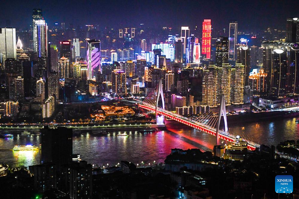 A night view of southwest China's Chongqing Municipality is seen on July 6, 2024. (Xinhua/Wang Quanchao)