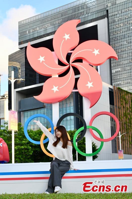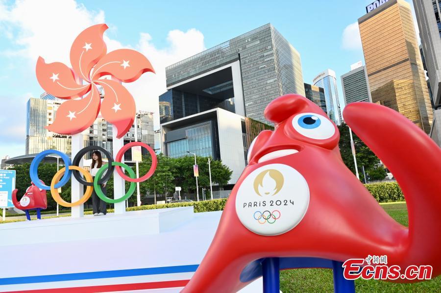 Decorations are installed at a park in the Hong Kong Special Administrative Regionto greet the upcoming 2024 Paris Olympic Games, July 9, 2024. (Photo: China News Service/Li Zhihua)