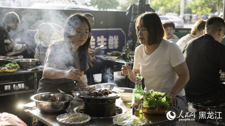 People enjoy a barbecue in Qiqihar city, northeast China's Heilongjiang Province. (People's Daily Online/Xu Chenglong)