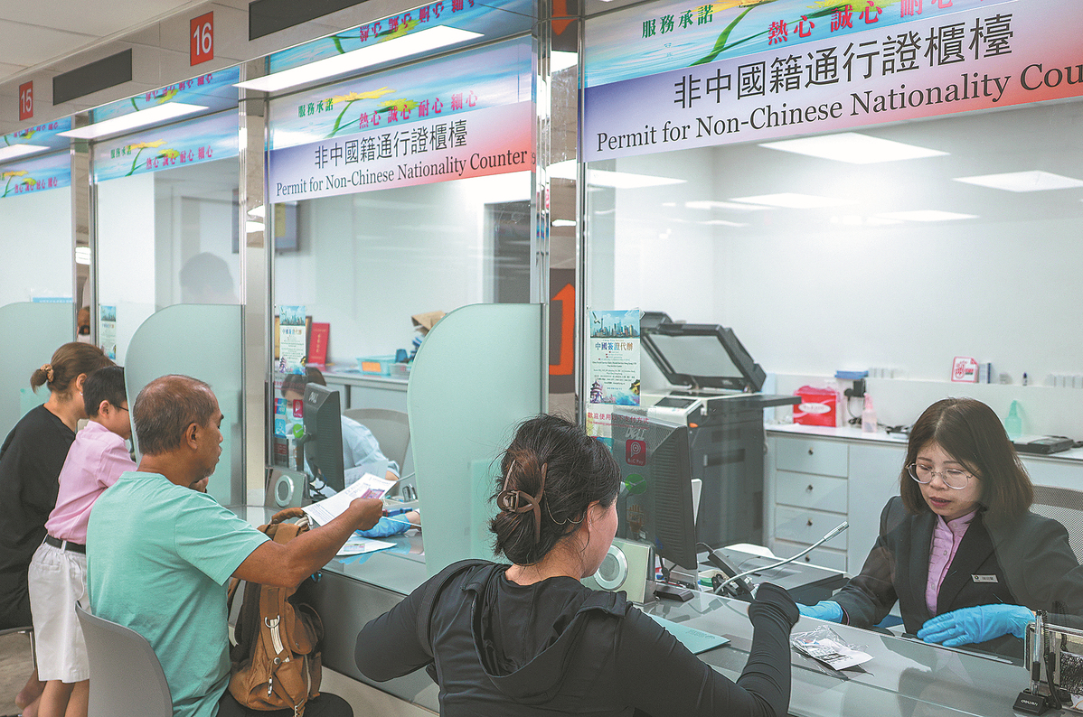 Hong Kong permanent residents who are not Chinese apply for five-year permits to go to the mainland for short-term purposes such as business, tourism, and exchanges at a service center in Hong Kong on Wednesday. (ANDY CHONG/CHINA DAILY)