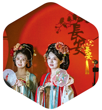 It's common to see tourists clad in Hanfu outfits posing for photos at the Datang Everbright City. A large number of Hanfu experience stores in and around the block offer services such as Hanfu makeup and photography to tourists.