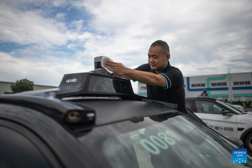Intelligent connected vehicle tester Li Cheng checks a vehicle before a road test in Wuhan, central China's Hubei Province, July 4, 2024. Thanks to advances in electrification, networking, and intelligent transformation, along with progress in autonomous driving technologies, self-driving vehicles are gradually becoming a reality. As the industry develops, more professionals are becoming testers of self-driving vehicles. The profession "intelligent connected vehicle tester" was listed as one of 19 new professions by the Ministry of Human Resources and Social Security earlier this year. (Xinhua/Wu Zhizun)