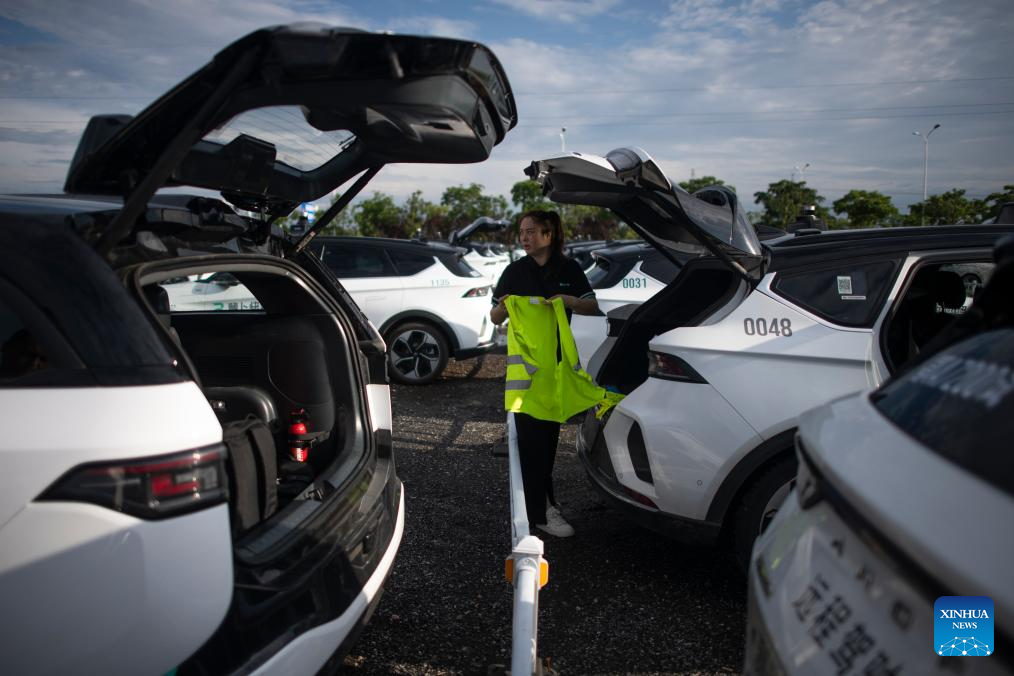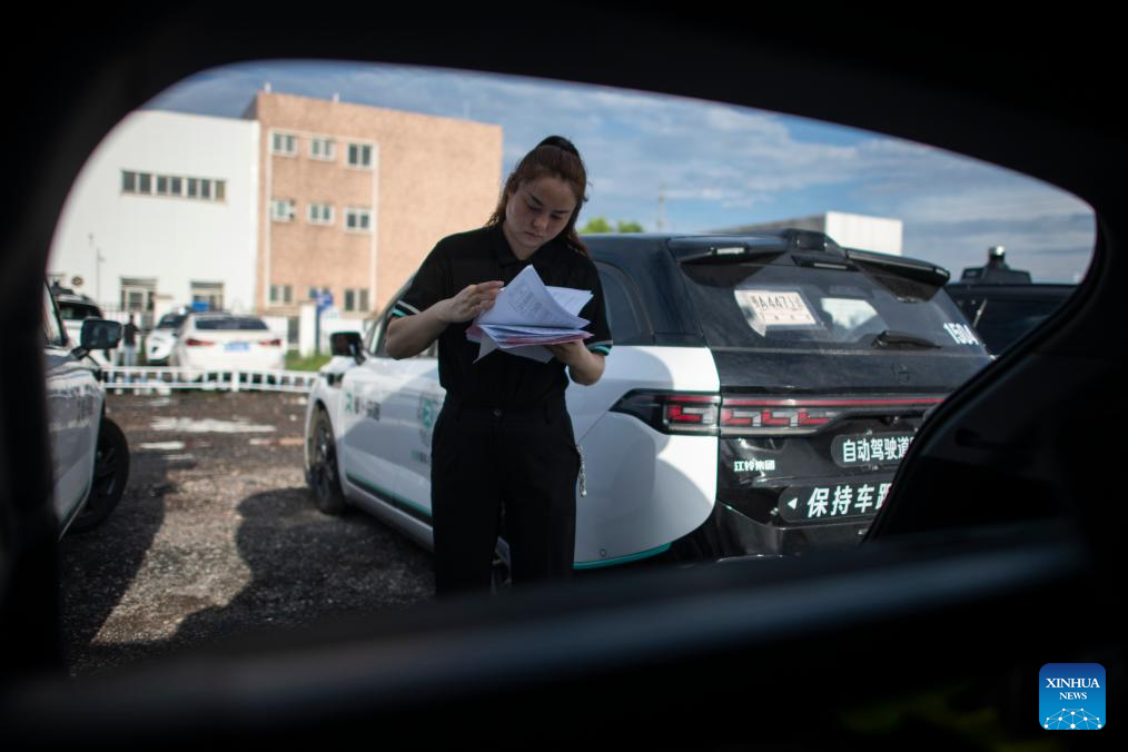 Intelligent connected vehicle tester Wang Juan prepares for a road test in Wuhan, central China's Hubei Province, July 4, 2024. Thanks to advances in electrification, networking, and intelligent transformation, along with progress in autonomous driving technologies, self-driving vehicles are gradually becoming a reality. As the industry develops, more professionals are becoming testers of self-driving vehicles. The profession "intelligent connected vehicle tester" was listed as one of 19 new professions by the Ministry of Human Resources and Social Security earlier this year. (Xinhua/Wu Zhizun)