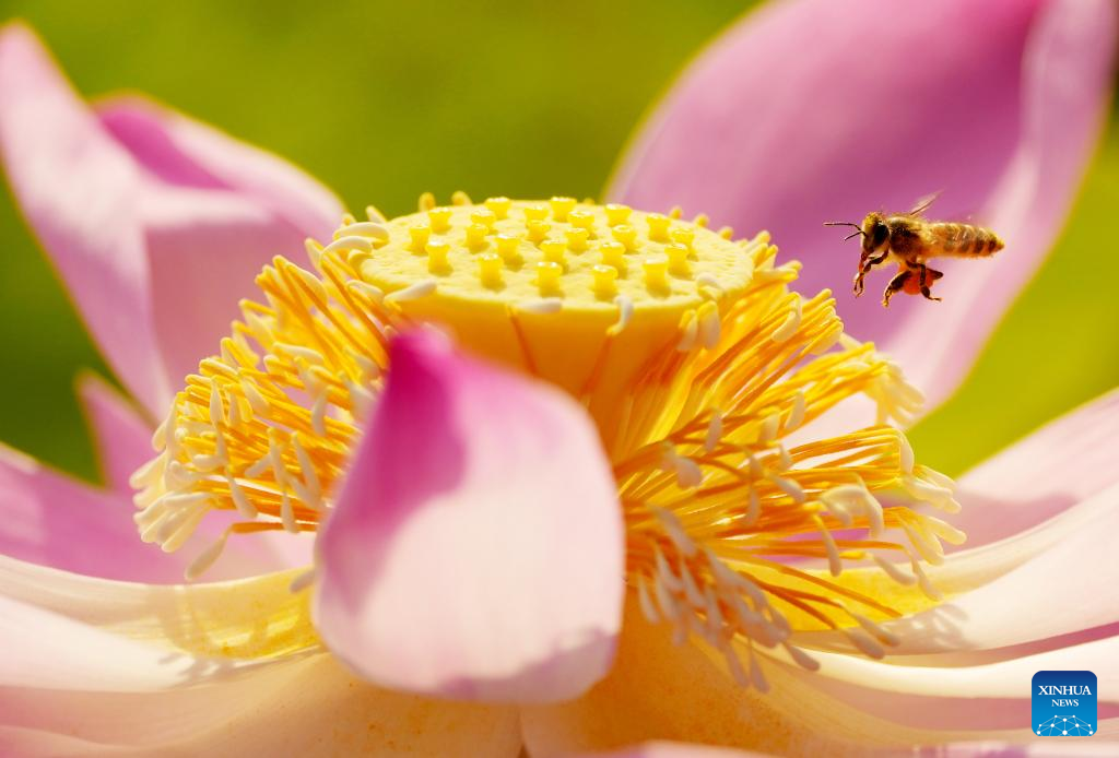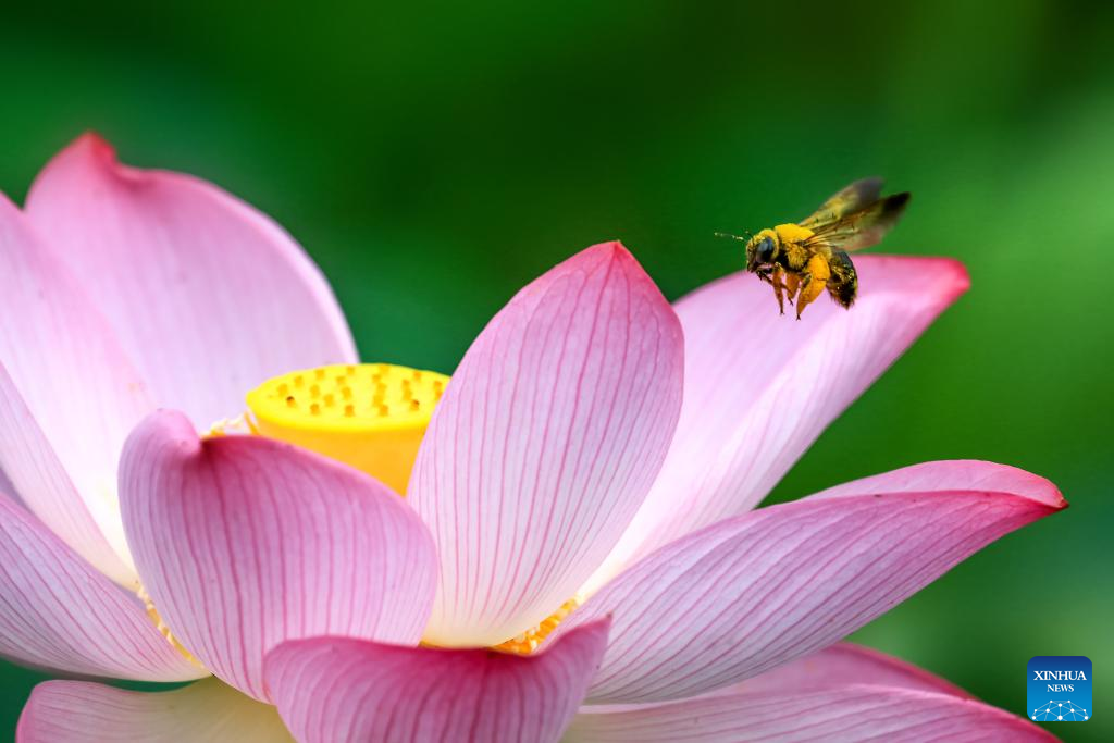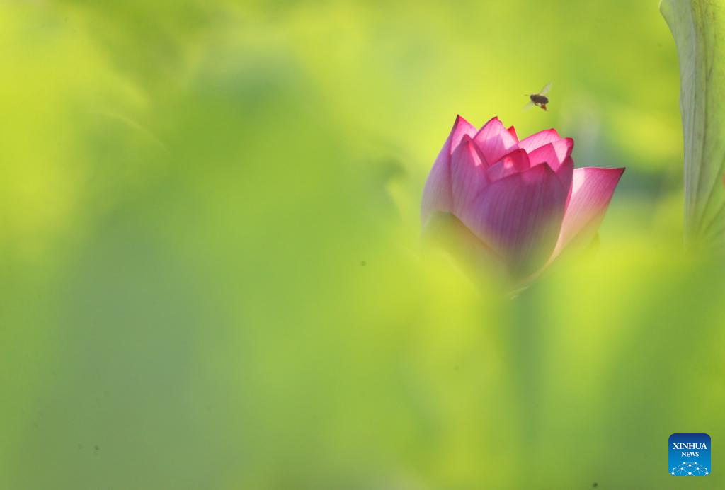 This photo taken on July 12, 2024 shows a lotus flower at a scenic spot in Nanning, capital of south China's Guangxi Zhuang Autonomous Region. (Photo by Ma Huabin/Xinhua)