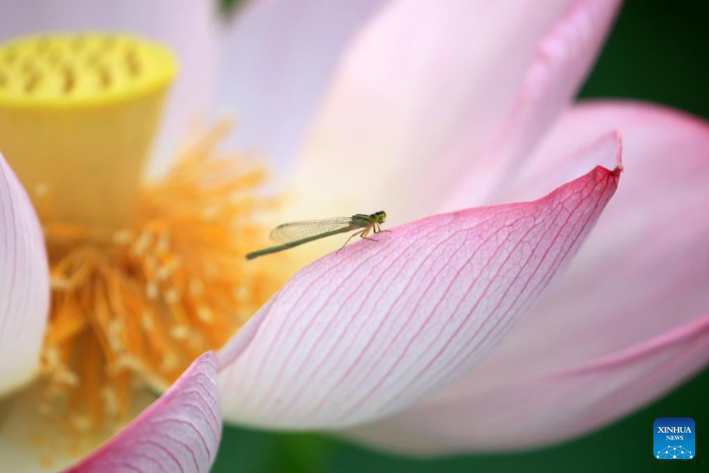 This photo taken on July 14, 2024 shows a dragonfly at Nanhu Park in Hengyang, central China's Hunan Province. (Photo by Cao Zhengping/Xinhua)