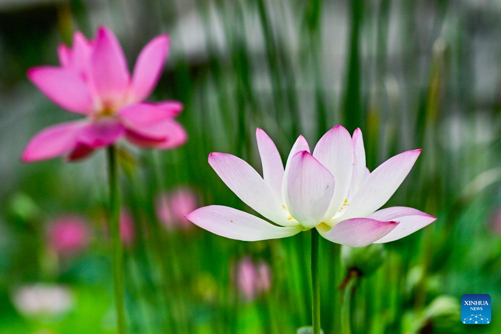 This photo taken on July 12, 2024 shows lotus flowers at a park in Qingzhou, east China's Shandong Province. (Photo by Wang Jilin/Xinhua)