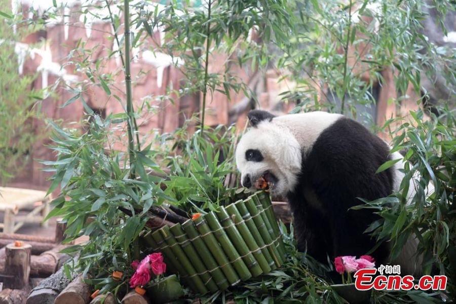 Giant panda celebrates 17th birthday at Jinan Zoo