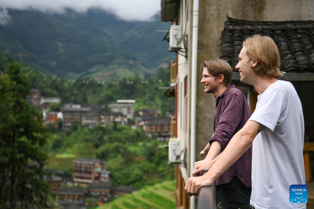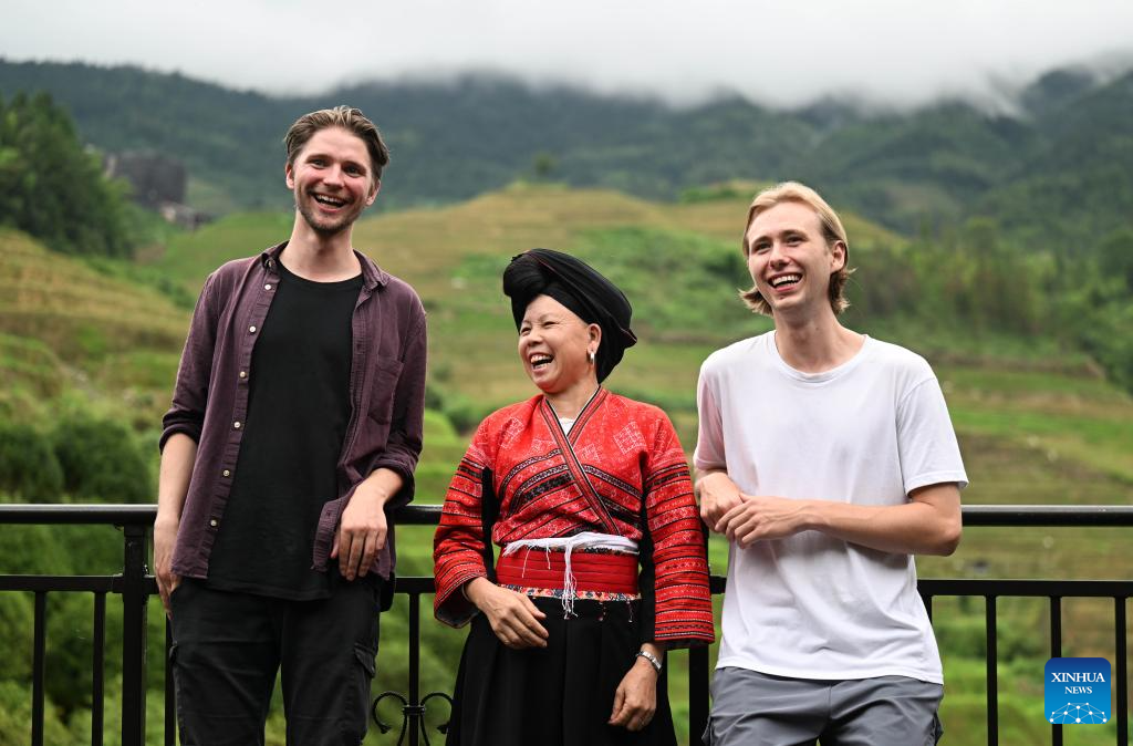 German tourists enjoy rural scenery at a homestay at Dazhai Village of Longsheng County, south China's Guangxi Zhuang Autonomous Region, June 26, 2024. (Xinhua/Zou Jingyi)