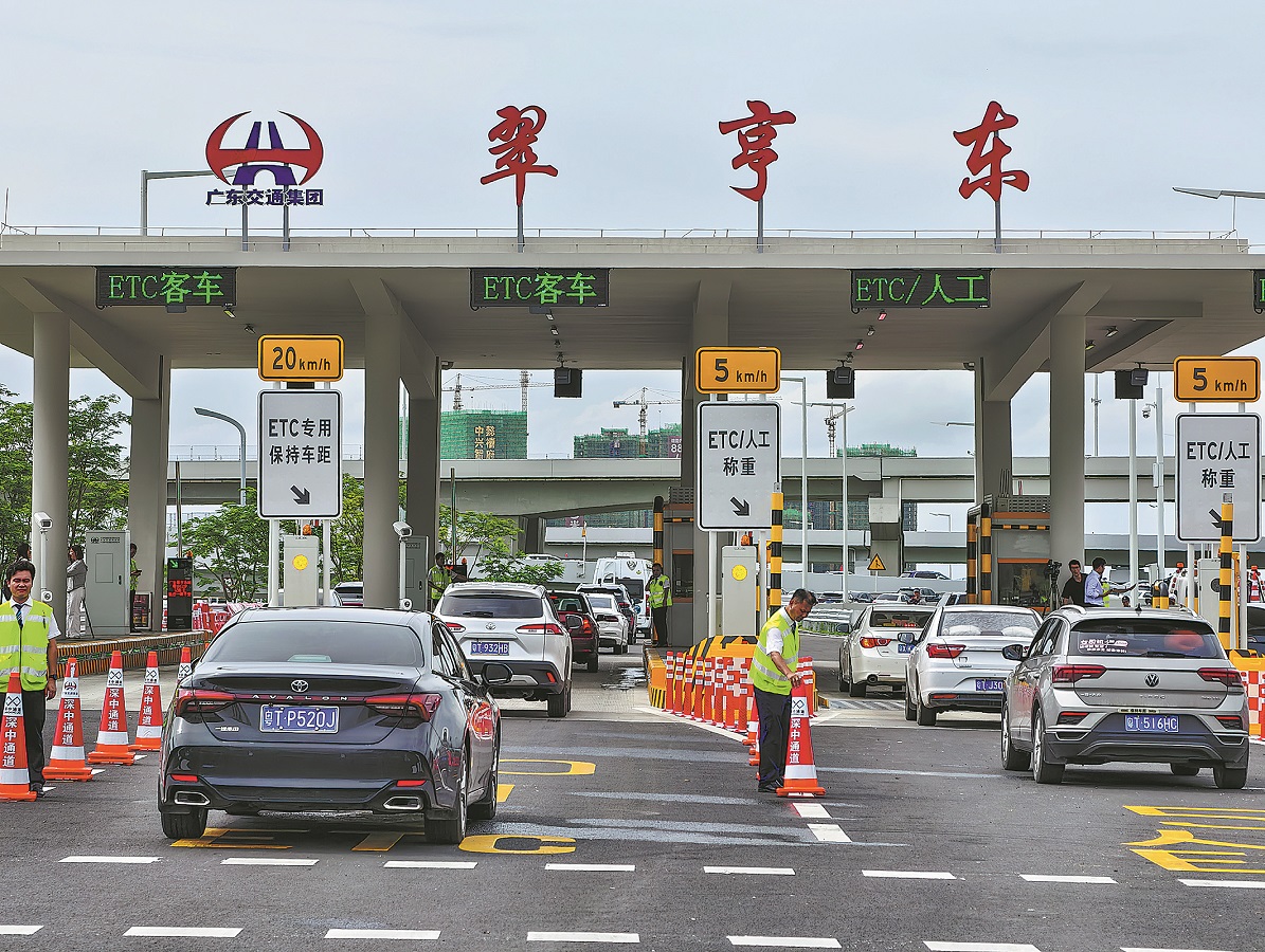 Vehicles line up at the Cuihengdong toll station in Zhongshan to enter the Shenzhen-Zhongshan Link on June 30. (LIU DAWEI/XINHUA)