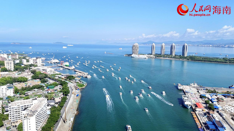 At 9 a.m., the glistening sea welcomed over 200 yachts of various types as they sailed into the harbor in Sanya, south China's Hainan Province.