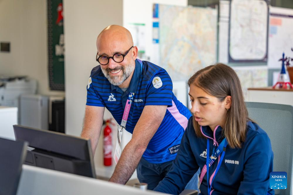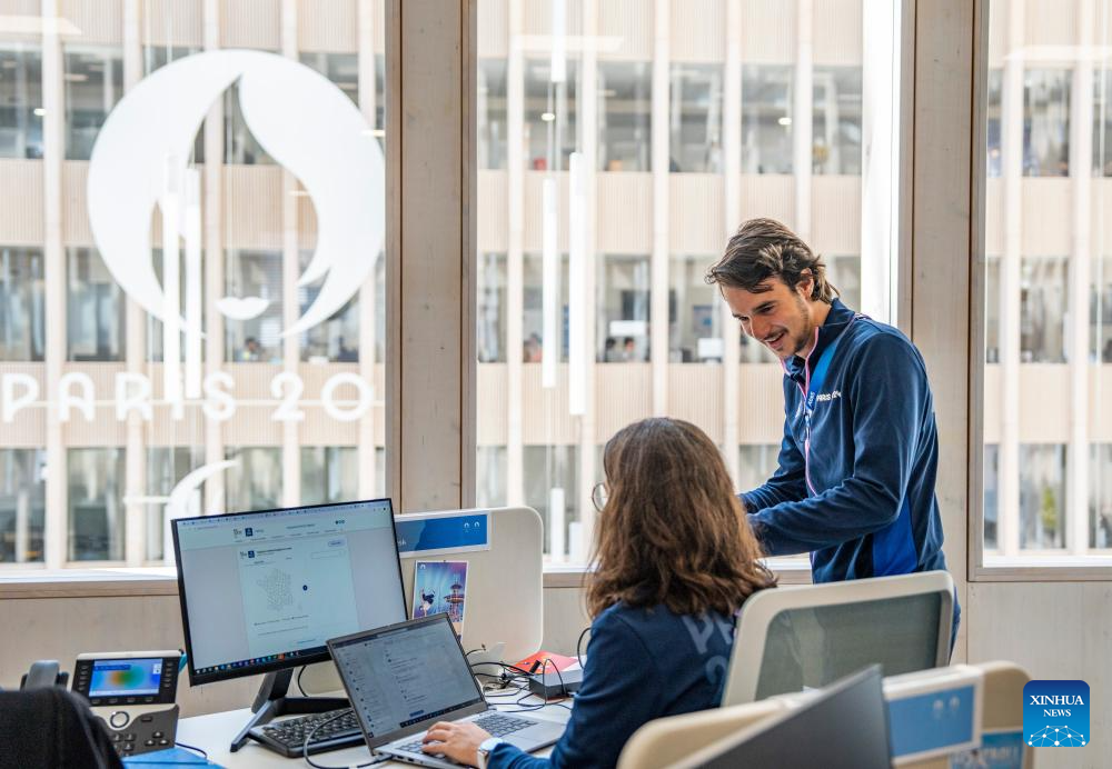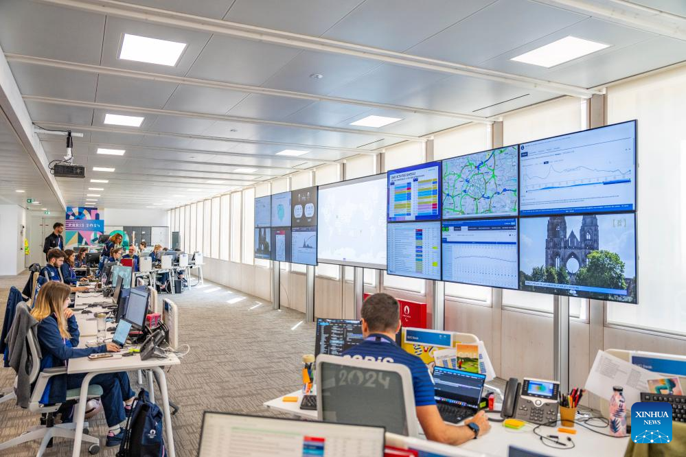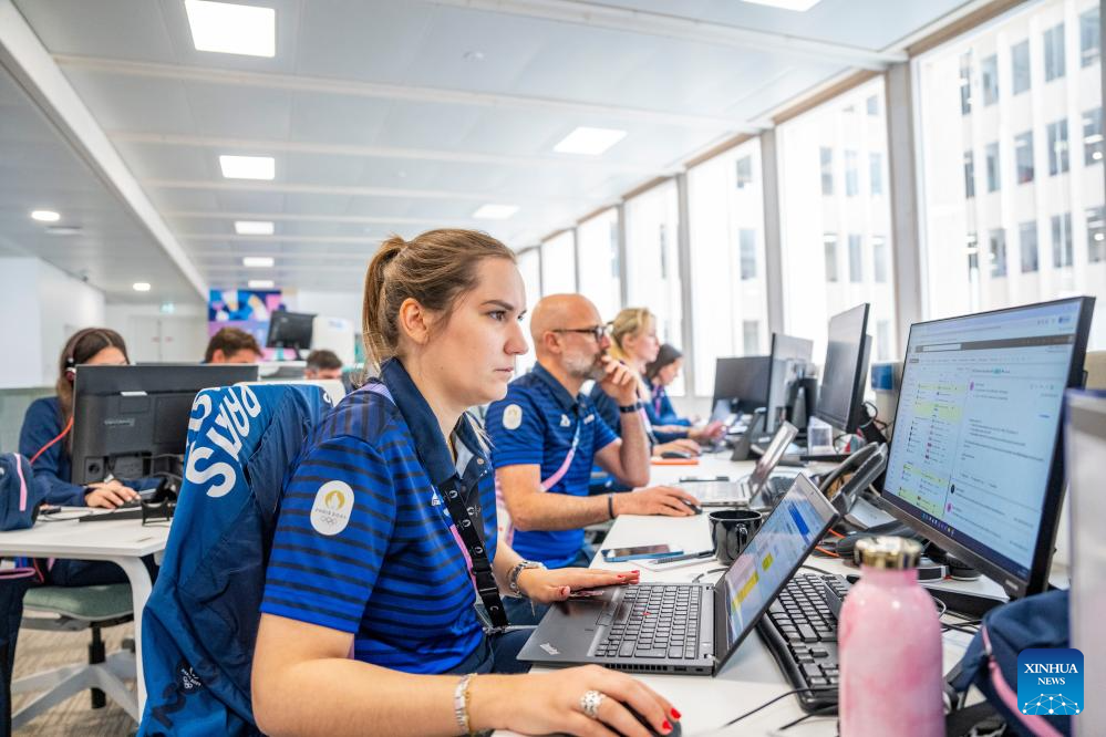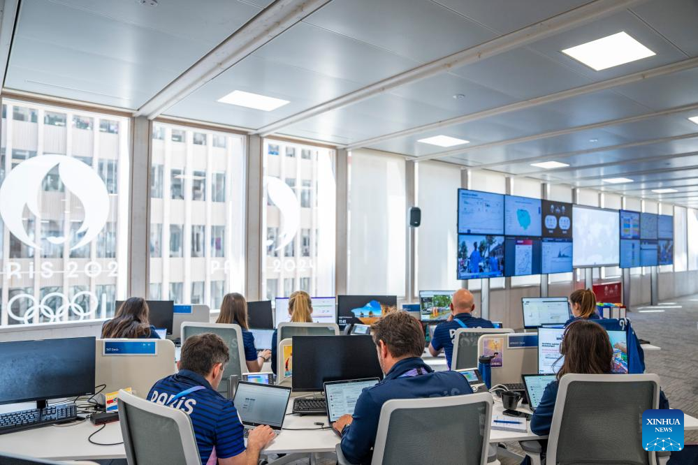 Staff work at MOC (Main Operation Center) in the office building of Paris 2024 organizing committee in Paris, France on July 17, 2024. (Xinhua/Sun Fei)