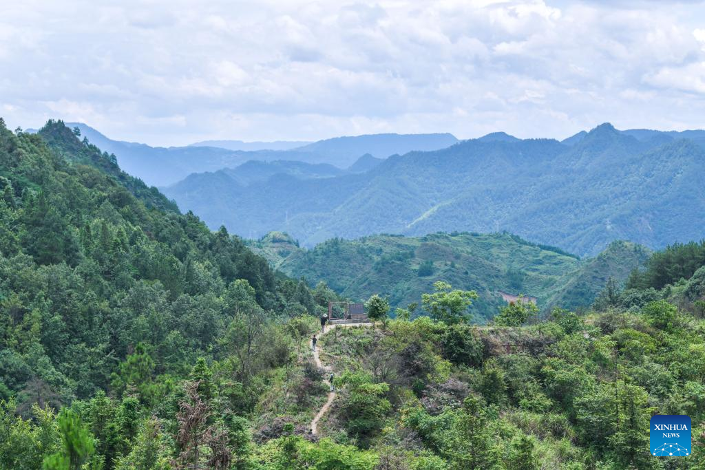 Liu Feng (L) and his son Liu Xingyu patrol the Miaoling National Geopark in Qiandongnan Miao and Dong Autonomous Prefecture, southwest China's Guizhou Province, July 15, 2024. (Xinhua/Yang Wenbin)?