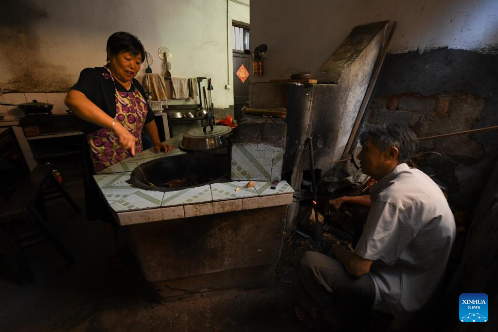 Residents Li Wensheng (R) and Song Shuixiu make dinner in Songzhuang Village of Songyang County, east China's Zhejiang Province, July 17, 2024. Nestled in the mountains, Songzhuang Village of Songyang County boasts a history of over 600 years and preserves many traditional residences. In recent years, local government has renovated old houses and ancient paths and introduced new business forms to attract young talents to start their businesses there. (Xinhua/Weng Xinyang)