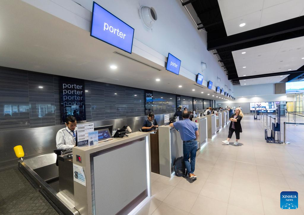 Staff members of Porter Airlines wait at the check-in counters at Billy Bishop Toronto City Airport in Toronto, Canada, on July 19, 2024. A faulty software update from cybersecurity firm CrowdStrike Friday morning has affected computers-running Microsoft Windows at organizations, causing major IT outage, taking out banks, airlines and businesses globally. (Photo by Zou Zheng/Xinhua)