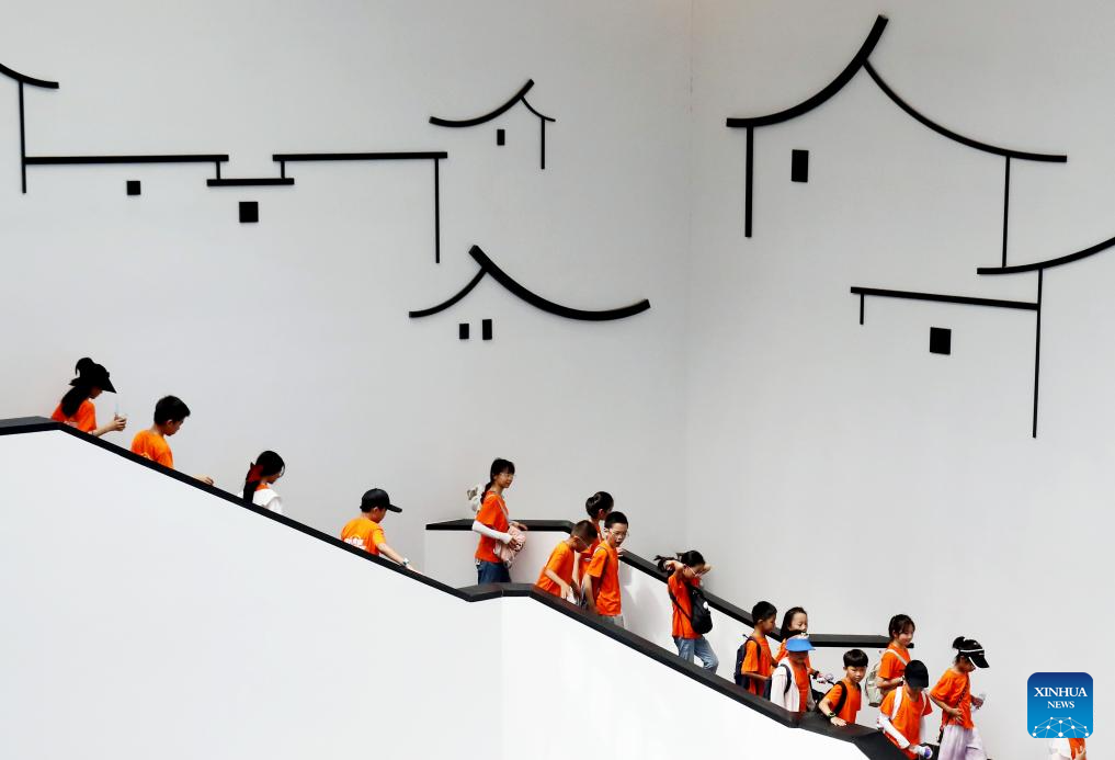 Children visit a folk customs hall at Huqiu Mountain scenic spot in Suzhou, east China's Jiangsu Province, July 19, 2024. (Photo by Hang Xingwei/Xinhua)