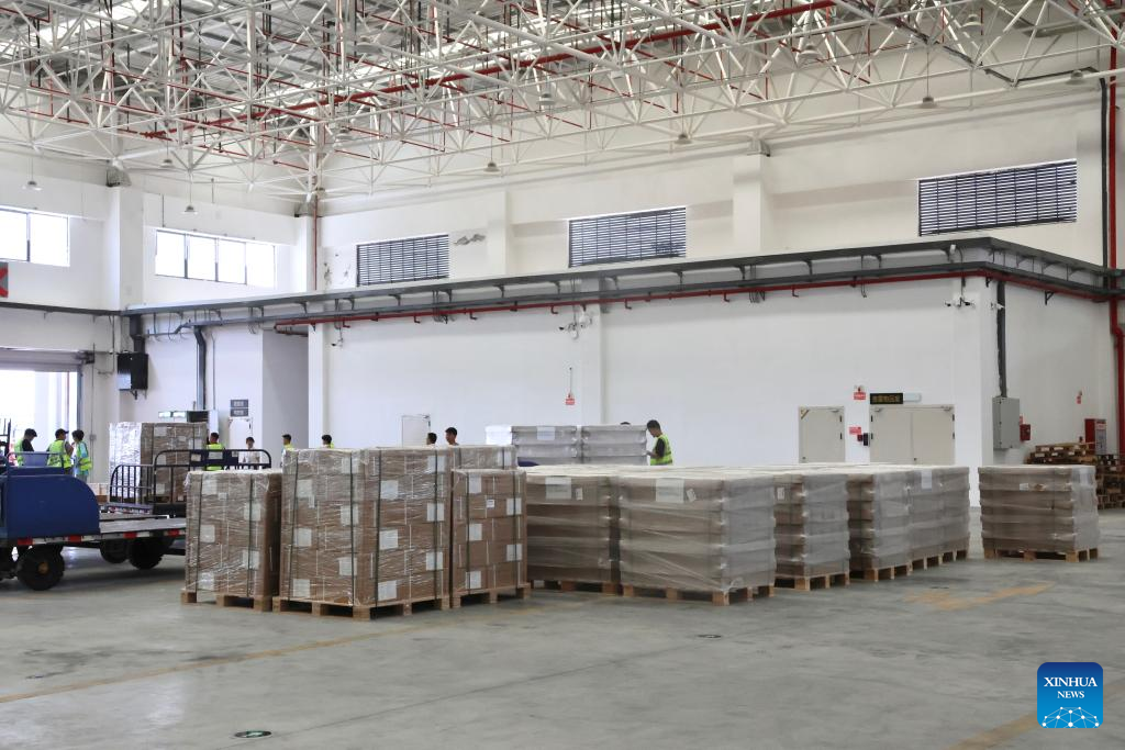 Cargos are seen at a warehouse of Guiyang Longdongbao International Airport in Guiyang, southwest China's Guizhou Province, July 13, 2024. (Xinhua)