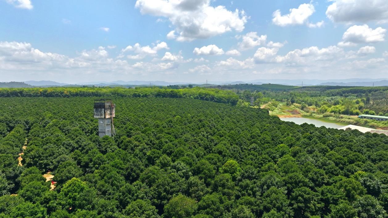 Photo shows a distant view of a mangosteen orchard in Chanthaburi province, Thailand. (People's Daily/Bai Yuanqi)