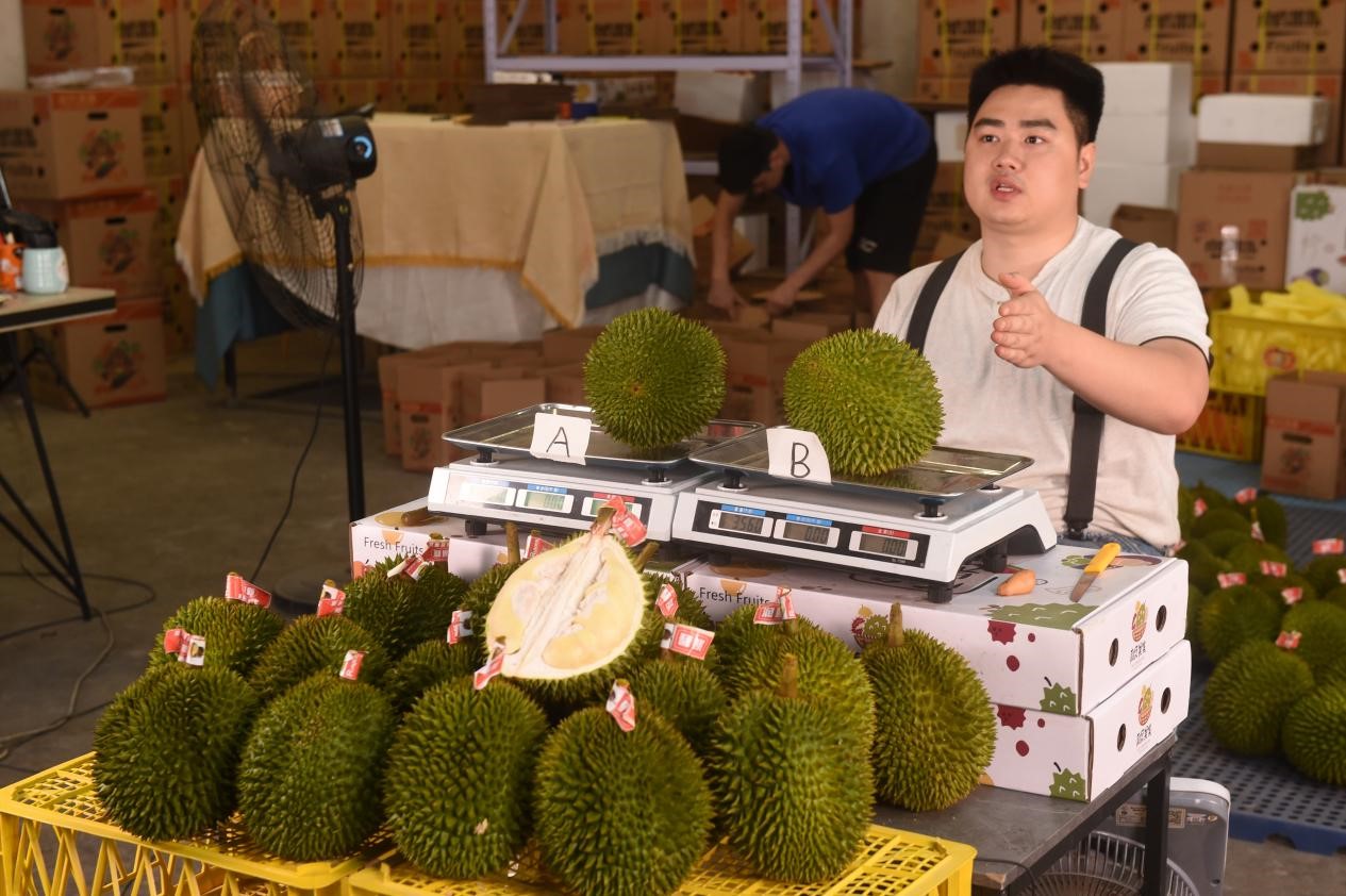 Ye Hongsheng, a 24-year-old man who sells fruits via livestreaming at the center, said that ASEAN fruits like durian and jackfruit are selling well, and langsat and mango have also become popular choices for consumers looking to try something new.
