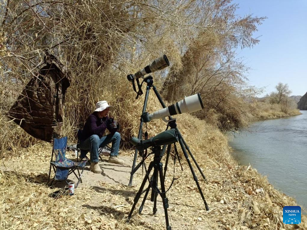 This undated file photo shows a staff member monitoring migratory birds at Heihe Wetland National Nature Reserve in Zhangye, northwest China's Gansu Province.(Xinhua)