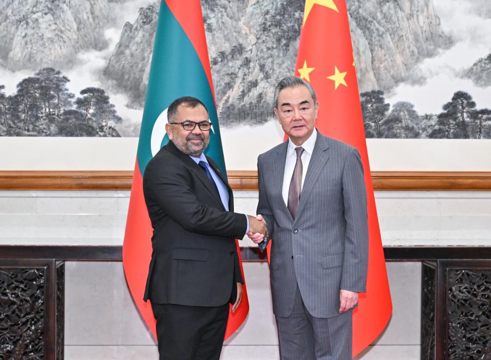Wang, also a member of the Political Bureau of the Communist Party of China Central Committee, said that China and the Maldives have continuously given each other mutual respect and support since the two sides established diplomatic ties 52 years ago. China-Maldives relations have been a good example of equality and win-win cooperation between countries of different sizes.