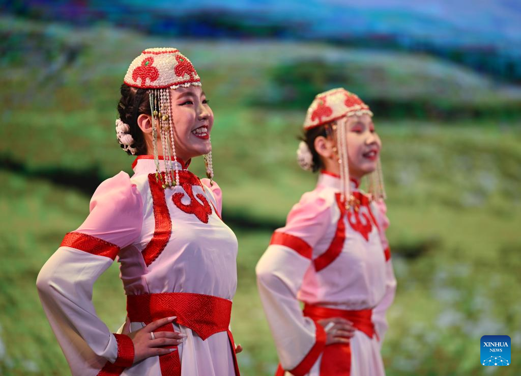 Actresses from Mongolia perform at the 2024 Tianjin International Children's Art Festival in Tianjin, north China, July 22, 2024. The art festival, with the participation of children's art troupe from more than 20 countries and regions, will last until July 26. (Xinhua/Zhao Zishuo)
