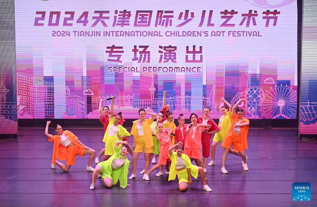 Dancers from Russia perform at the 2024 Tianjin International Children's Art Festival in Tianjin, north China, July 22, 2024. The art festival, with the participation of children's art troupe from more than 20 countries and regions, will last until July 26. (Xinhua/Zhao Zishuo)