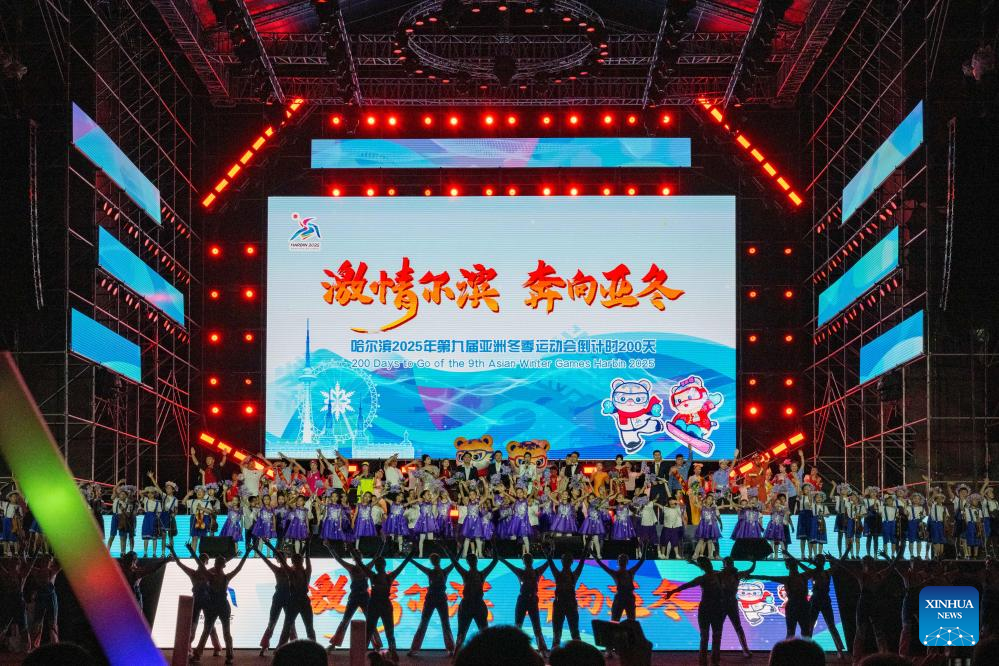 Performers act during a ceremony to mark 200 days to go for the 9th Asian Winter Games Harbin 2025 in Harbin, northeast China's Heilongjiang Province, July 22, 2024. (Xinhua/Wang Song)