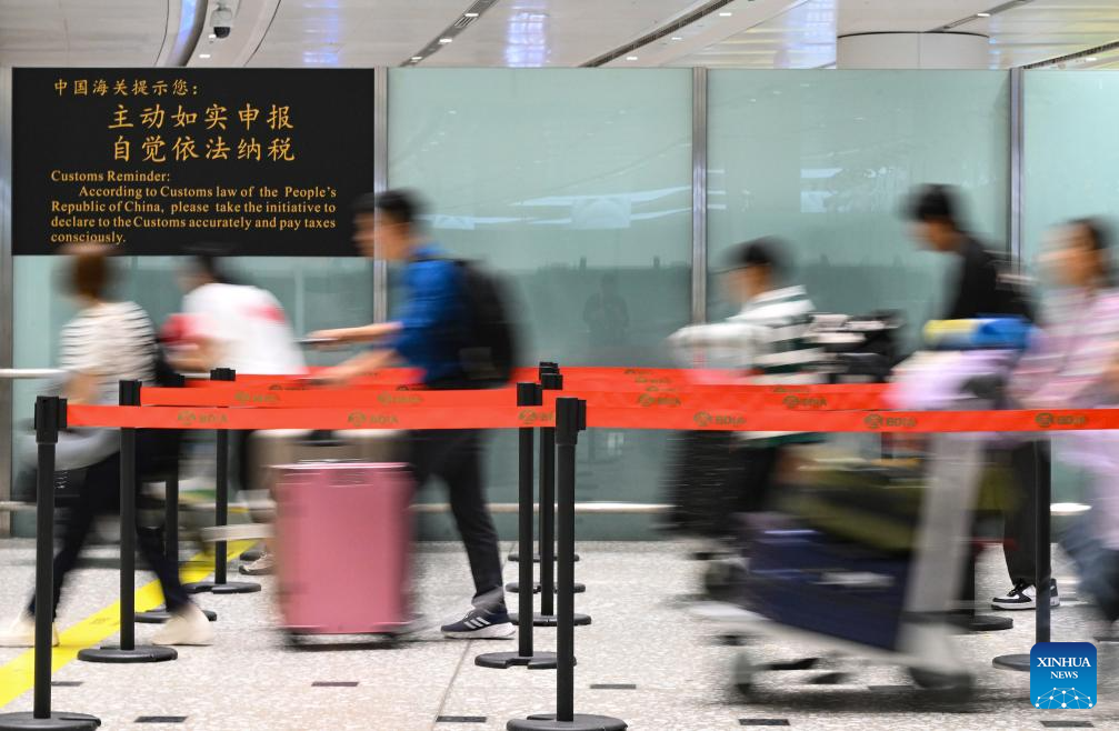 Travelers pass through customs at Beijing Daxing International Airport in Beijing, capital of China, July 18, 2024. With easier entry policies, including a 144-hour visa-free transit policy that expanded to 37 entry ports as of July 15 and pilot visa-free policies for some countries, "on-a-whim travel" to China is becoming a reality. (Xinhua/Li He)
