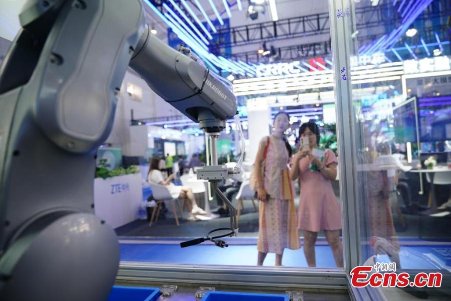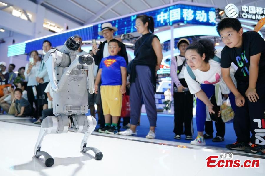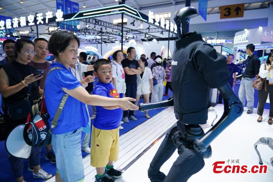Visitors view a robot at the 8th China-South Asia Expo in Kunming, southwest China's Yunnan Province, July 24, 2024. (Photo: China News Service/Liu Ranyang)