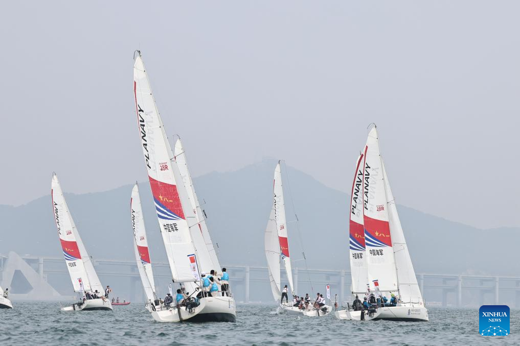 The first Navy Cup International Sailing Regatta is held in Dalian, northeast China's Liaoning Province, July 24, 2024. (Photo by Li Haotian/Xinhua)