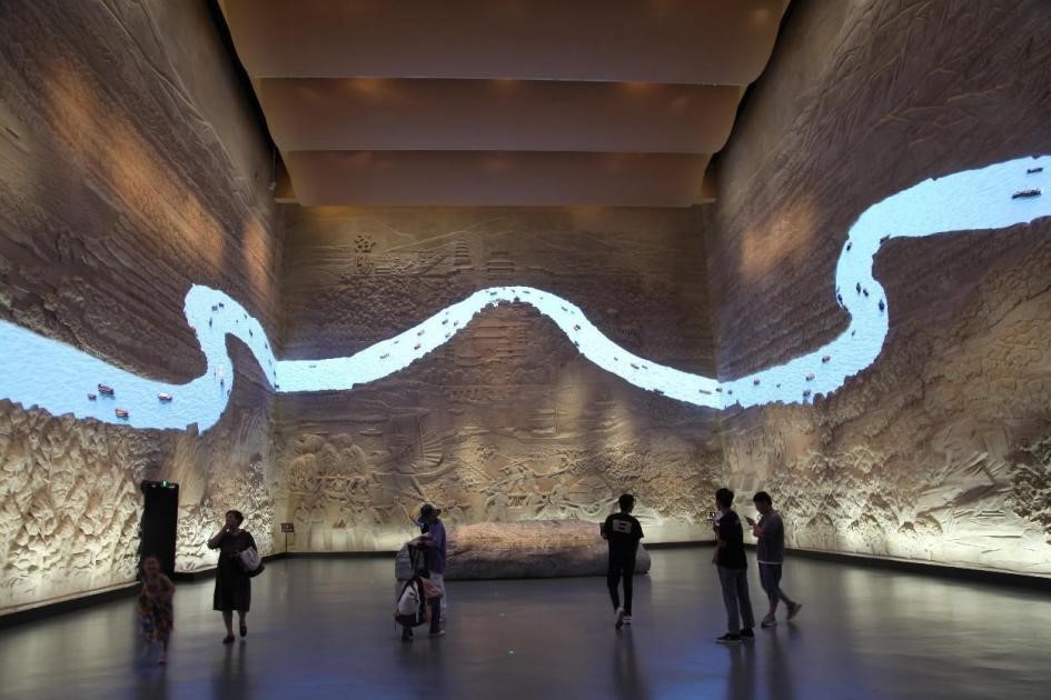A motion mural is exhibited at the Sui-Tang Dynasties Grand Canal Cultural Museum in Luoyang, central China's Henan province. (People's Daily Online/Sun Jihu)