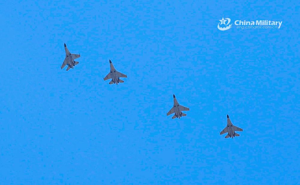 Fighter jets attached to an aviation regiment under the PLA Air Force fly in formation during a flight training exercise in early June 2024. (eng.chinamil.com.cn/Photo by He Wanli)