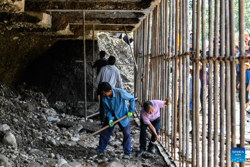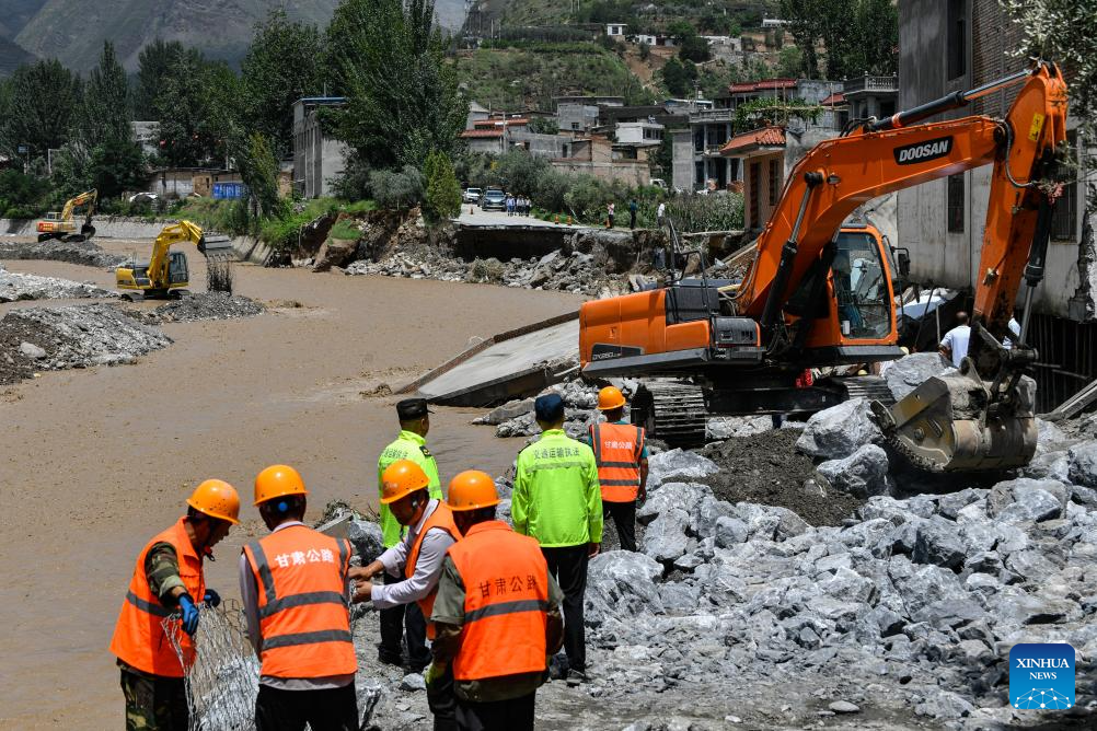 Longnan City in NW China races against time to repair flood-hit infrastructure