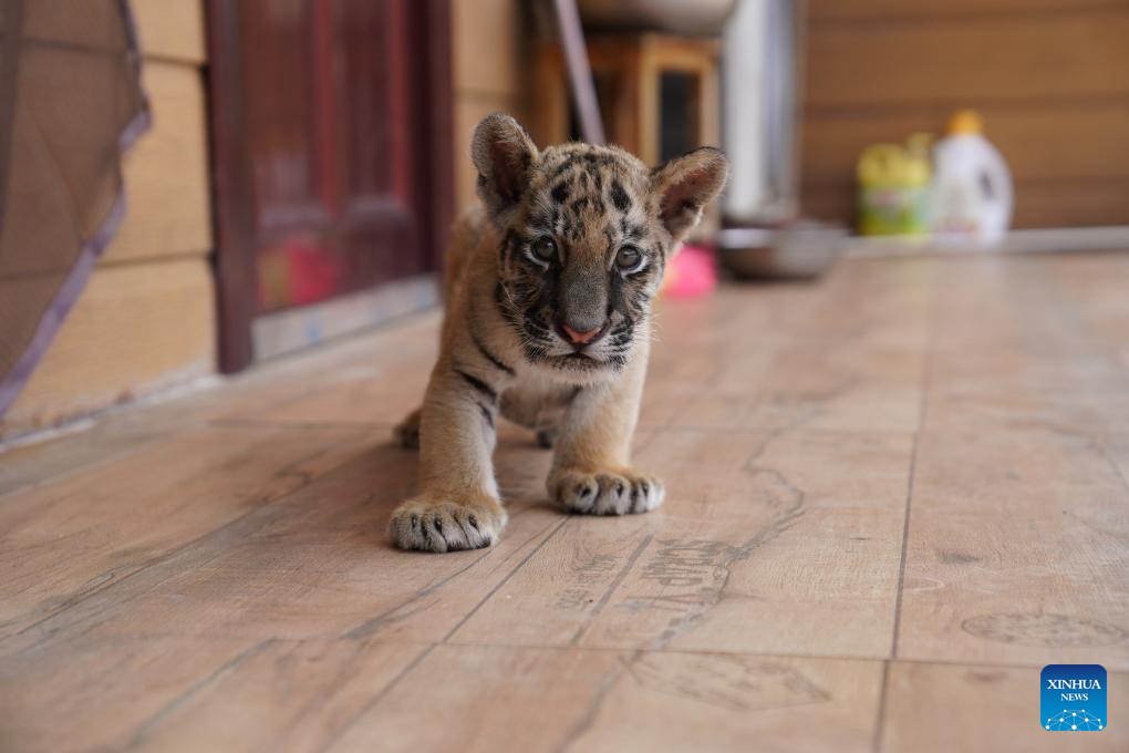 This photo taken on July 25, 2024 shows a Siberian tiger cub at Fuzhou Xian'gaishan wildlife zoo in east China's Jiangxi Province. (Xinhua/Zhou Mi)