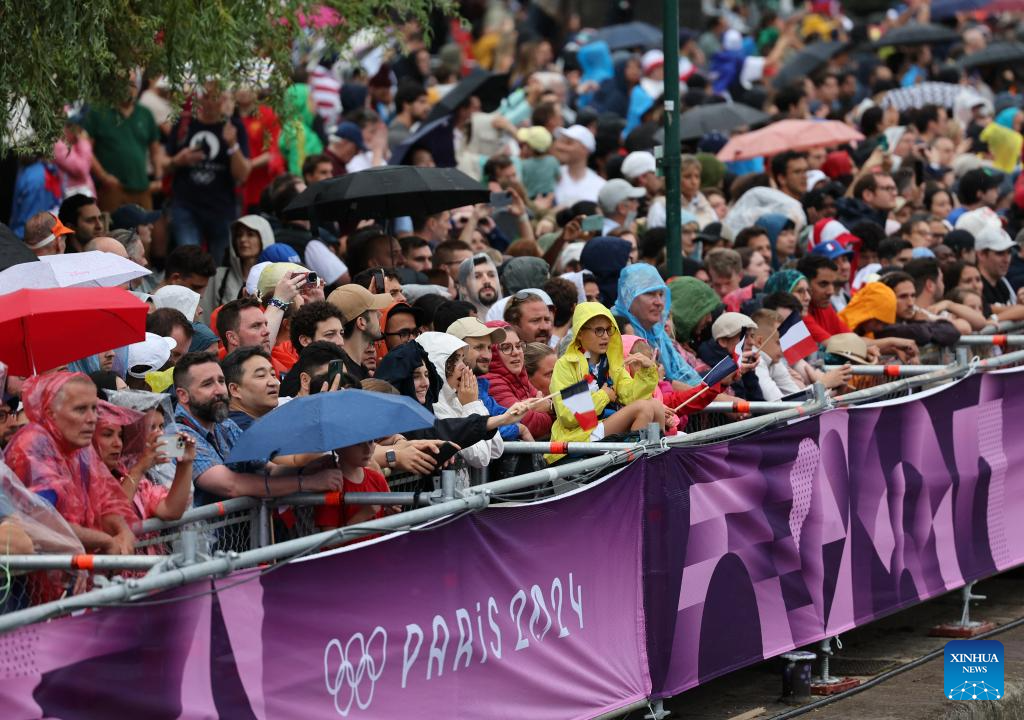 Spectators are seen during the opening ceremony of the Paris 2024 Olympic Games in Paris, France, July 26, 2024. (Xinhua/Guo Yu)