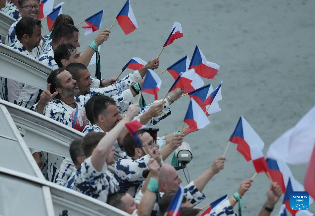 Members of the delegation of Czech Republic are seen during the opening ceremony of the Paris 2024 Olympic Games in Paris, France, July 26, 2024. (Xinhua/Wan Xiang)