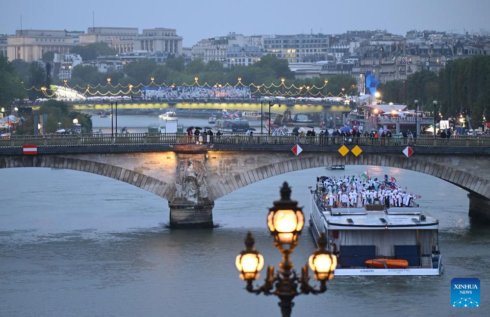 Members of the delegations are seen during the opening ceremony of the Paris 2024 Olympic Games in Paris, France, July 26, 2024. (Xinhua/Meng Yongmin)