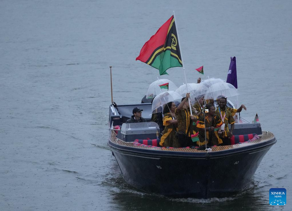 Members of the delegation of Vanuatu are seen during the opening ceremony of the Paris 2024 Olympic Games in Paris, France, July 26, 2024. (Xinhua/Wan Xiang)