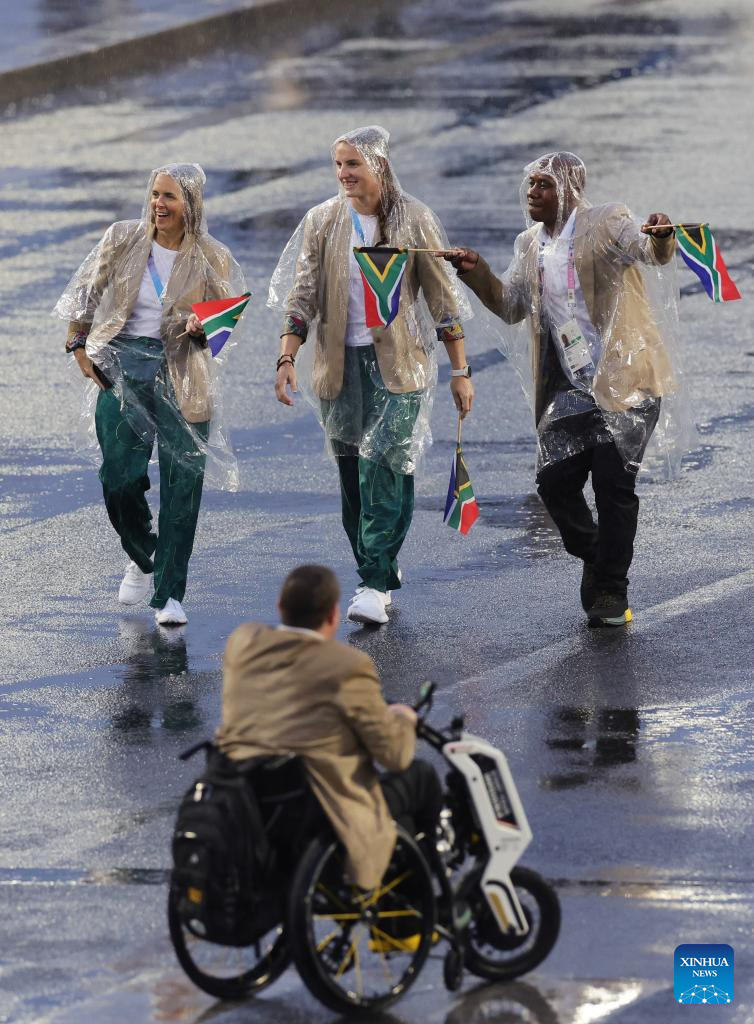Members of the delegation of South Africa are seen during the opening ceremony of the Paris 2024 Olympic Games in Paris, France, July 26, 2024. (Xinhua/Li Ming)