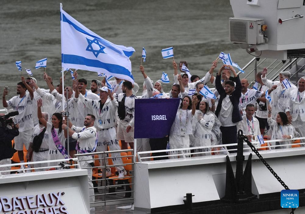 Members of the delegation of Israel are seen during the opening ceremony of the Paris 2024 Olympic Games in Paris, France, July 26, 2024. (Xinhua/Meng Yongmin)