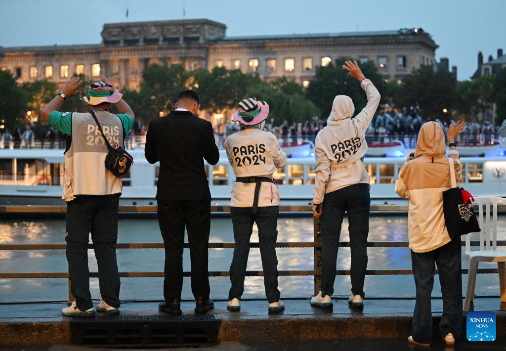 Members of delegations attend the opening ceremony of the Paris 2024 Olympic Games in Paris, France, July 26, 2024. (Xinhua/Zhang Hongxiang)