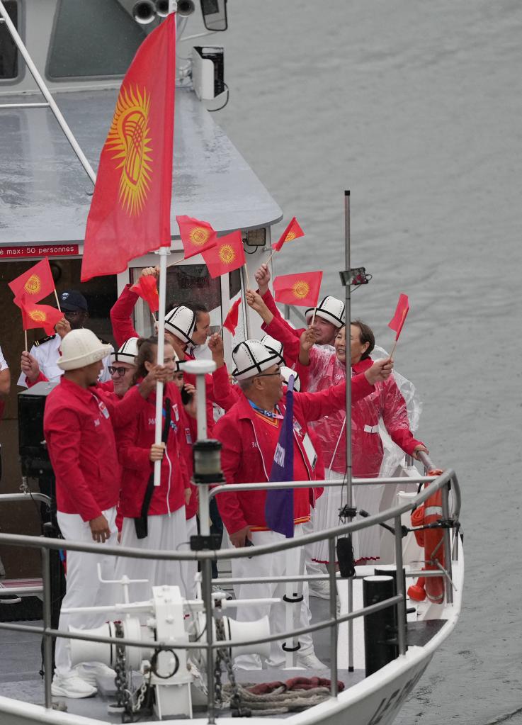 Members of the delegation of Kyrgyzstan are seen during the opening ceremony of the Paris 2024 Olympic Games in Paris, France, July 26, 2024. (Xinhua/Wan Xiang)