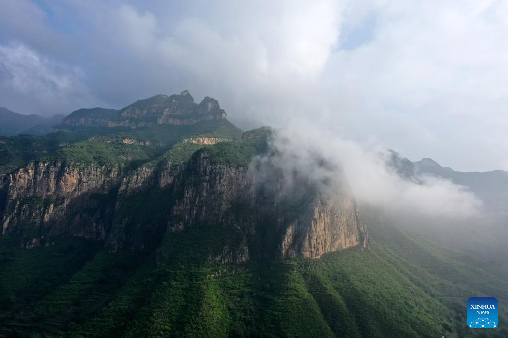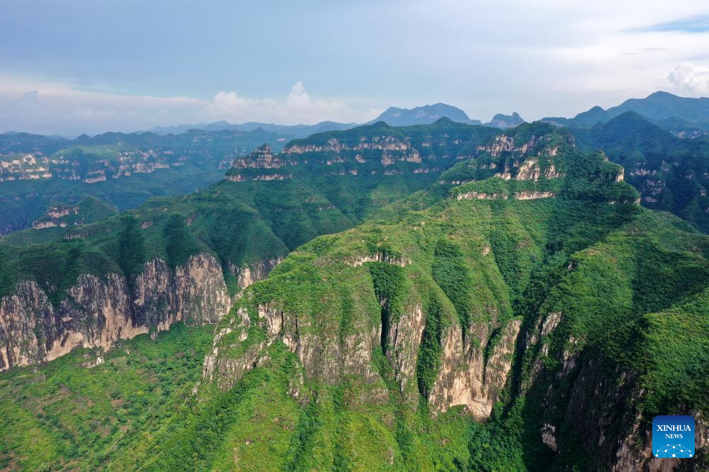 An aerial drone photo taken on July 26, 2024 shows a view of the Taihang Mountain in Pingshun County, Changzhi City of north China's Shanxi Province. (Xinhua/Zhan Yan)