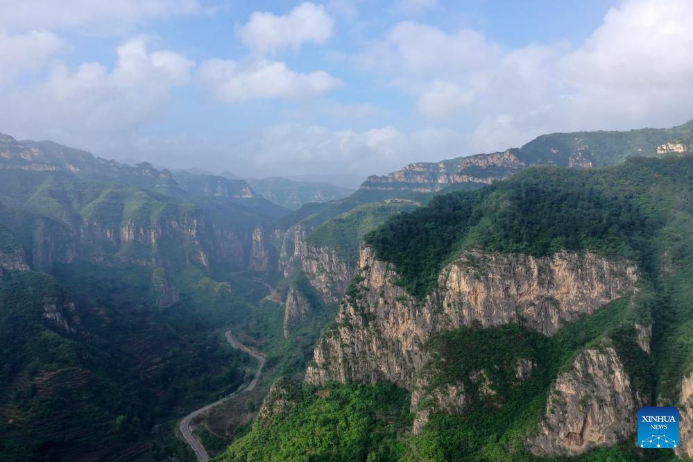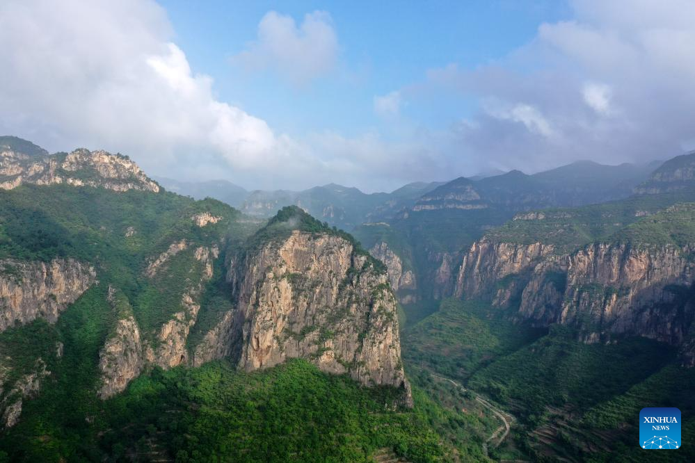 An aerial drone photo taken on July 24, 2024 shows a view of the Taihang Mountain in Pingshun County, Changzhi City of north China's Shanxi Province. (Xinhua/Zhan Yan)