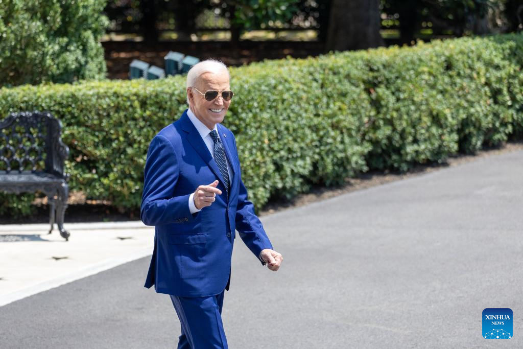 U.S. President Joe Biden walks toward the South Lawn to board Marine One at the White House in Washington, D.C., the United States, on July 29, 2024. (Xinhua/Hu Yousong)