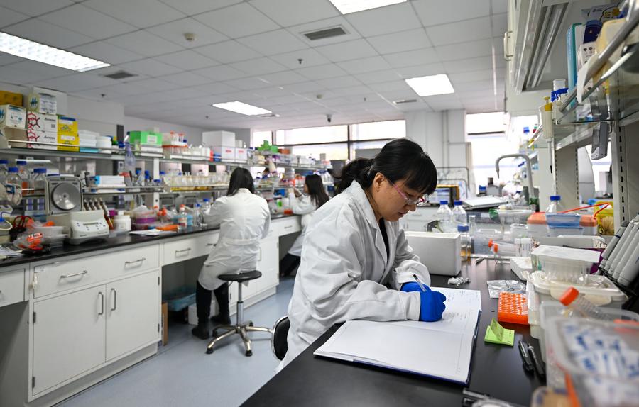 A researcher records experimental data at the Tianjin Institute of Industrial Biotechnology under the Chinese Academy of Sciences in north China's Tianjin, Jan. 2, 2024. (Xinhua/Sun Fanyue)