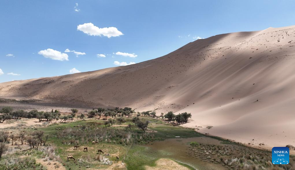 China's Badain Jaran Desert -- Towers of Sand and Lakes, was included on the World Heritage List by the United Nations Educational, Scientific and Cultural Organization (UNESCO) at the 46th session of the UNESCO World Heritage Committee held in New Delhi, India. (Xinhua/Bei He)