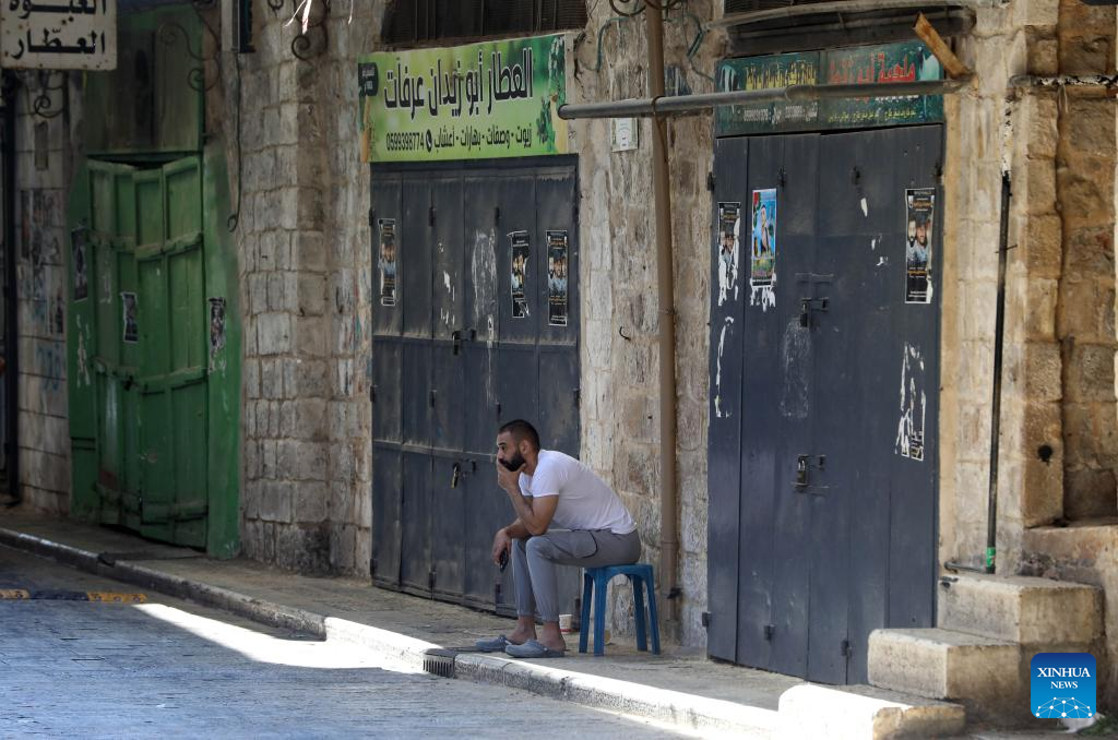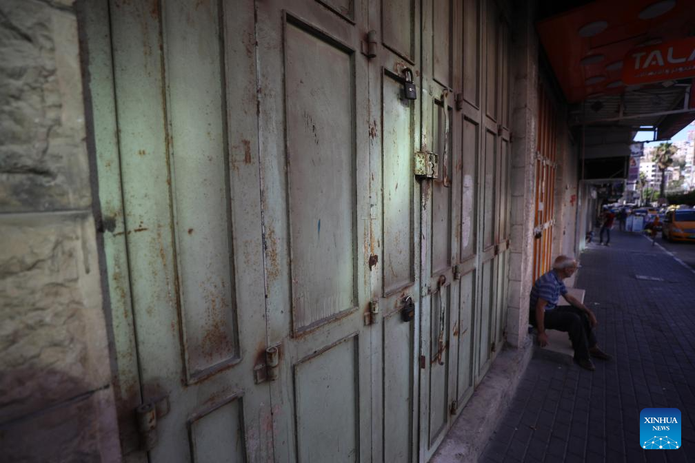 A man sits in front of closed shops during a general strike in the West Bank city of Nablus, on July 31, 2024. The Palestinian National and Islamic Forces on Wednesday declared a general strike across Palestine, condemning the assassination of Hamas Politburo Chief Ismail Haniyeh. (Photo by Ayman Nobani/Xinhua)