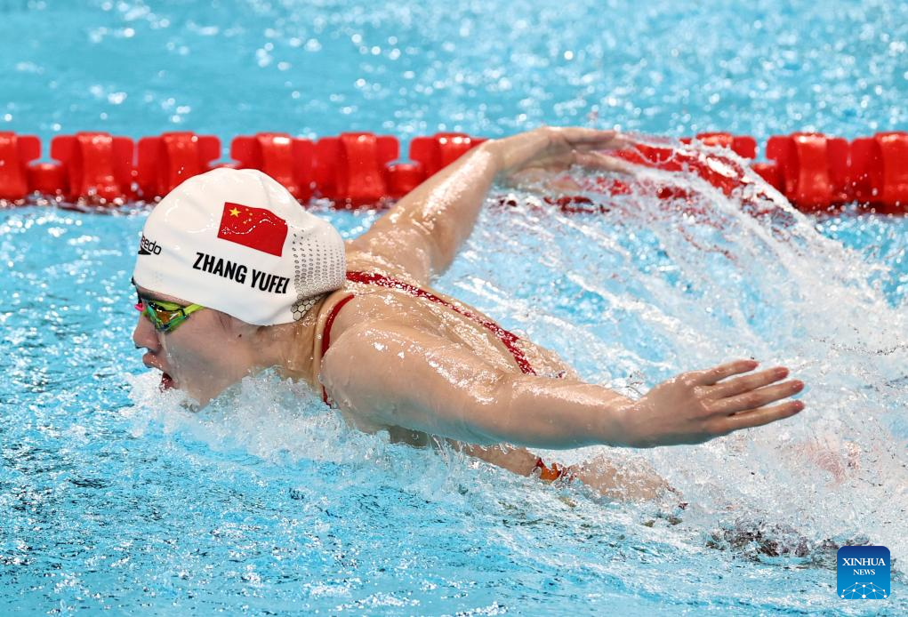 Zhang Yufei of China competes during the Women's 200m Butterfly Heat of swimming at the Paris 2024 Olympic Games in Paris, France, on July 31, 2024. (Xinhua/Luo Yuan)