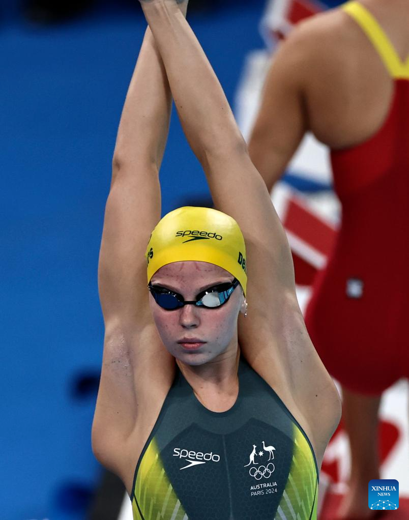 Elizabeth Dekkers of Australia warms up before the Women's 200m Butterfly Heat of swimming at the Paris 2024 Olympic Games in Paris, France, on July 31, 2024. (Xinhua/Luo Yuan)